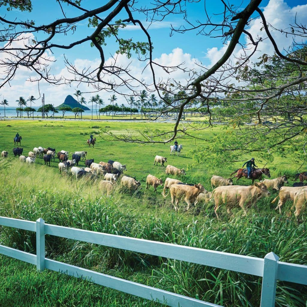 But while many think of the increased interest in a localicious movement as something born over the past two decades or so, Native Hawaiians were keenly aware of the relationship between longevity and their lands. Travel just a short distance from central Honolulu to O‘ahu’s Windward side and you’ll find evidence of ancient sustainable agriculture and ingenious fishing practices. At Kualoa Ranch, a 4,000-acre stretch of land dominated by high peaked mountains and spectacular coastline, there’s been sustainability and respect for the land for centuries.