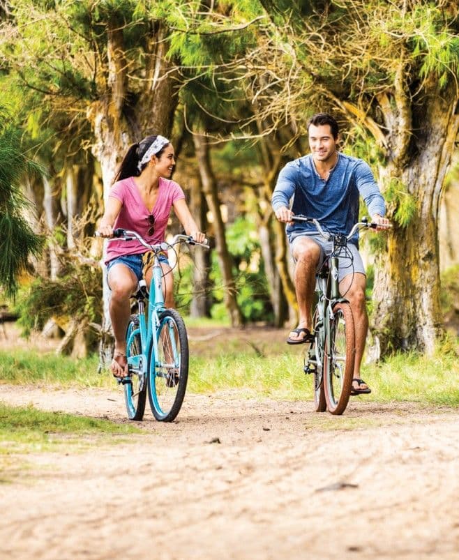 As you make your way back to Kapa‘a town you’ll notice an abundance of coconut trees, waterfalls, and boogie boarding opportunities. ‘Opaeka‘a Falls, Smith’s Tropical Paradise, and the Wailua River are ideal for families to tour the eastern shores of Kaua‘i. As an ISO guest, you will also enjoy oceanfront yoga (complimentary yoga mats are provided) and tai chi to cleanse your mind, body, and spirit. Rejuvenate and refresh to the sounds of the enticing ocean in the comfort of your own on-site retreat. If you decide to stay on property enjoy a beach stroll, our courtyard fitness sessions, or bicycle the famed Ke Ala Hele Makalae Kapa‘a bike path.