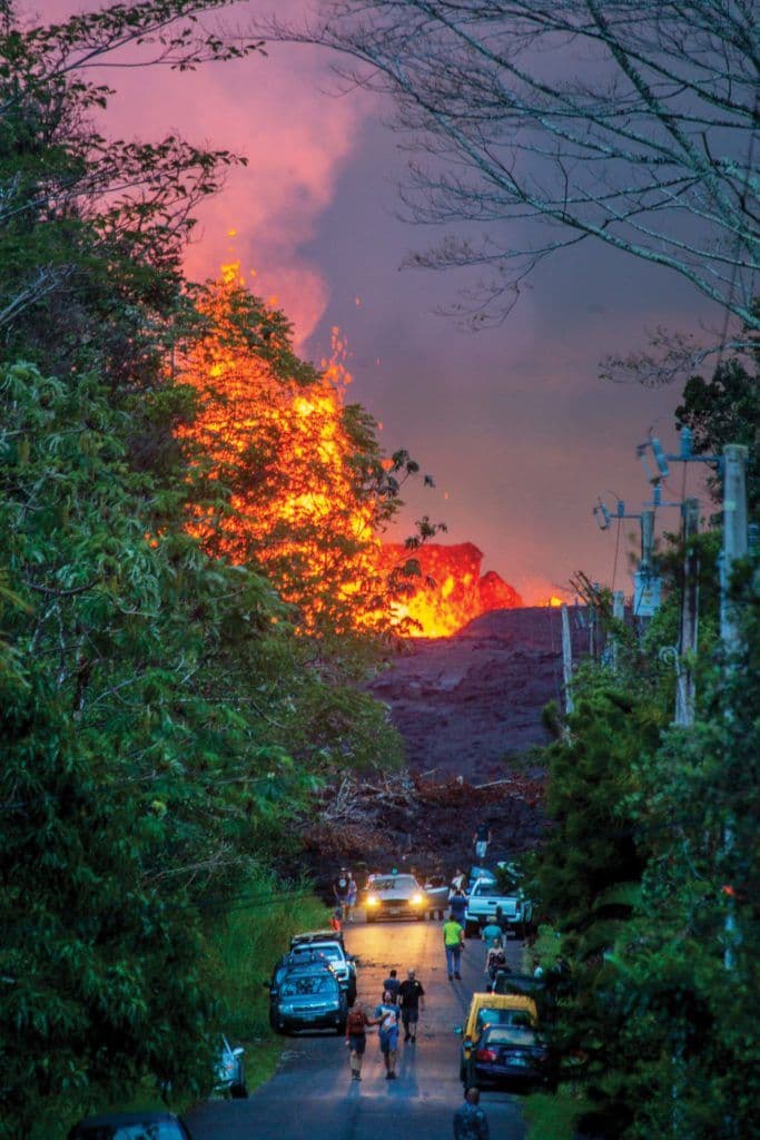 Pele still resides in Halema‘uma‘u crater at the summitbut recent volcanic activity would suggest the goddess is in full creation mode. At presstime, the situation was fluid (no pun intended) and the lava continued to flow, entering the ocean at Kapoho, forever altering the island’s coastline. Fountains of lava could be seen from as far away as Hilo (but posed no threat to the area). Pele’s hair (lightweight volcanic glass) was reported falling near Leilani Estates, one of the first subdivisions evacuated in early May 2018. In addition, off the southeast coast of the island of Hawai‘i, beneath the surface of the Pacific Ocean, and pushing up through hydrothermal vents is the newest of Pele’s creations—the island of Lo‘ihi.