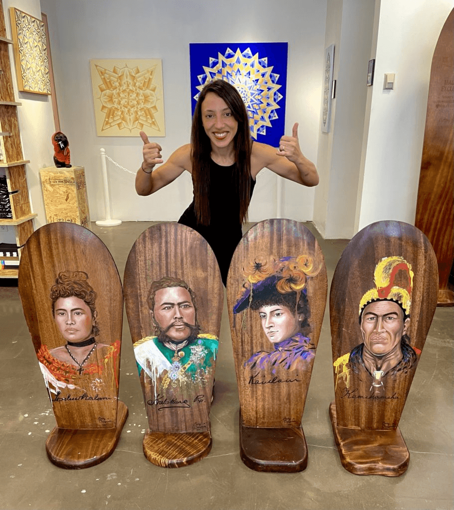 A Honolulu-based artist who incorporated intricate Polynesian designs into her paintings, as well as warm reds and yellows that evoke our islands’ stunning sunsets.