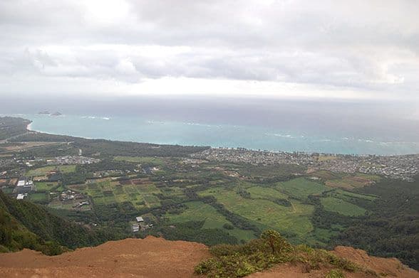 Standing at that pinnacle, two urges overwhelm me. One, to stand in quiet, subdued awe. The other, to make like an opera singer and fill my lungs to bursting so they can pipe my ecstasy into the valley below, and as my voice reaches a trilling crescendo, I leap, swoop and soar out over the all-encompassing glory of East Oahu. Over the wide beaches and farmlands of Waimanalo, along the stretching Kailua coastline, out to the jutting Kaneohe peninsula, and over to the right, lifting above the majestic Koko Crater and hovering over the ocean marina and channels that finger their way into the Hawaii Kai landscape. My inner singer fills my head as I gaze. I never took opera lessons and I don’t have hang gliding equipment, so I simply stand in mute awe.