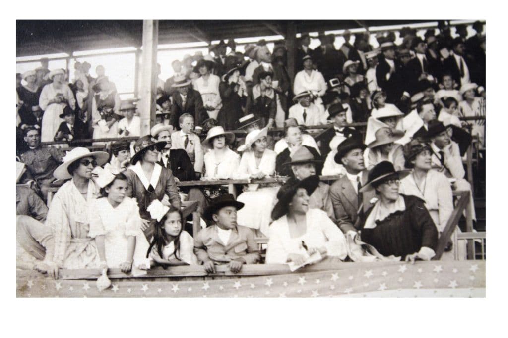 In the 1800s and early 1900s, the horse races at Kapi‘olani Park in Waikiki were a hub of social activity for ali‘i (royalty) and other prestigious members of society. Pictured here are spectators in the stands at a horse race at the park. Today, in certain areas of the park, perceptive visitors can still see date palms (starting at the bandstand) that once outlined the track. Hawai‘i State Archive photo