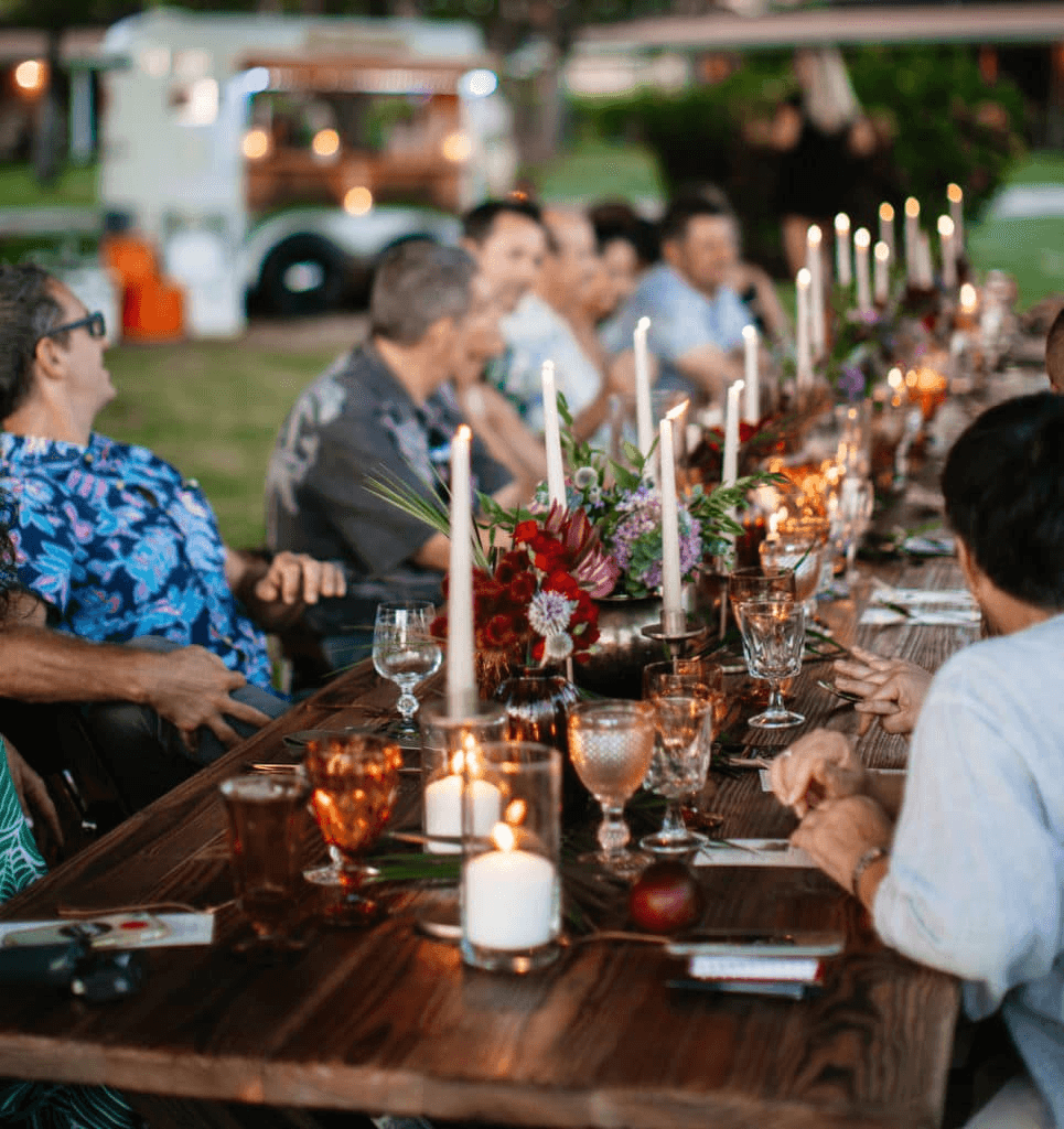 It starts with the setting—a sophisticatedly rustic communal table set under the 75-foot canopy of a 100-year-old rubber tree on the grounds of the Royal Lahaina Resort and Bungalows on Maui. Spanning 27 acres, the stunning property unfolds along renown Kaʻanapali Beach, which was once frequented by Hawaiian royalty. The Royal Lahaina Resort and Bungalows was the first resort built on the Kaʻanapali Coast and the tree hails back from that time, planted when the resort was first built.